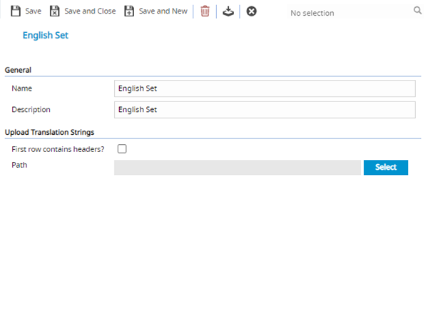 To add a new Translation Set click New , to edit an existing Translation Set click Edit