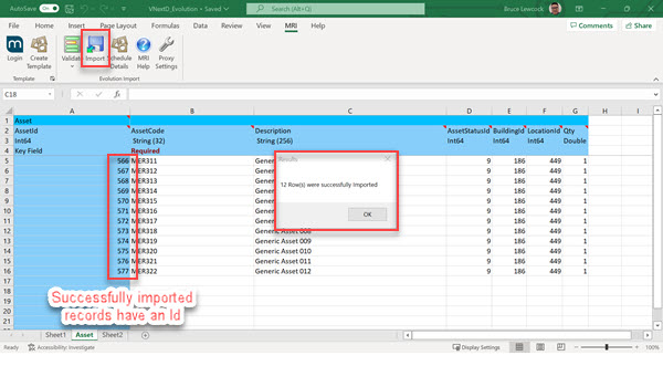 The Import button allows you to import the entire spreadsheet, when clicked it will: