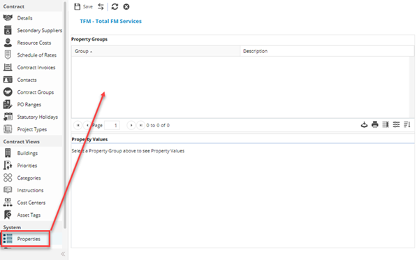 Once the Property Group has been assigned to the entity, click on the Group within the grid to enable the values to be completed.
