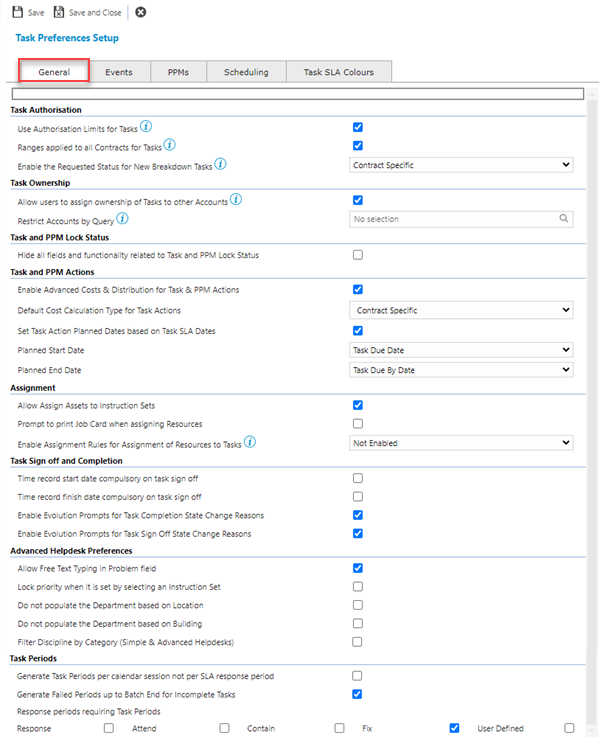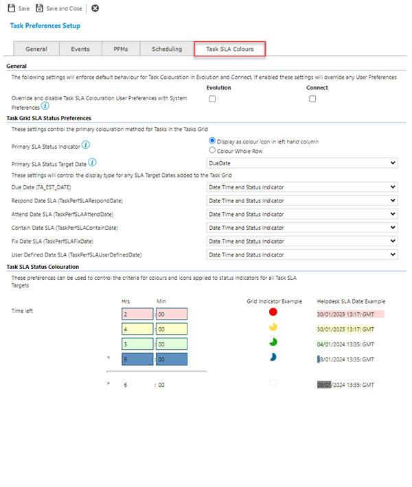 Preferences used to set the system behaviour for Task colouration in the Tasks grid and Helpdesk.