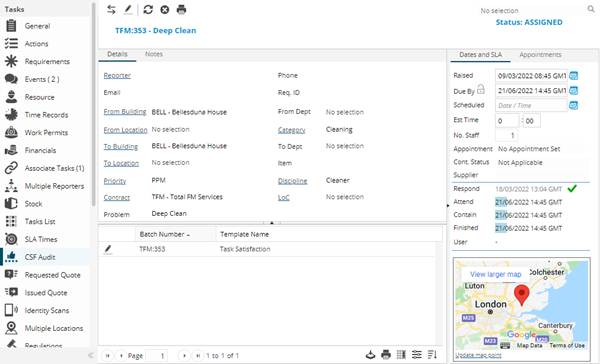 Once a Task has been completed, a Customer Satisfaction form can be sent and the results recorded against the Task.