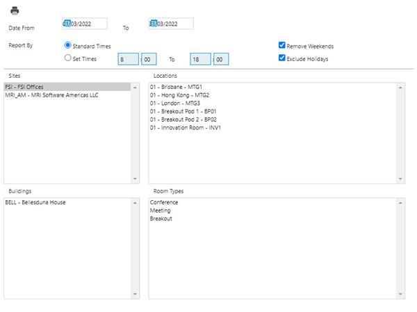 Enter the required dates, times, Sites, Buildings, Locations and Room Types. Click Run Report .